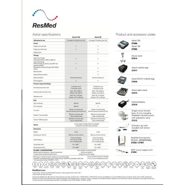 ResMed AstralTM 100 and Astral 150 provide personalized care every step of the way. With both invasive and non-invasive options, they offer a lightweight design, exceptional battery life1 and adaptive technologies to provide greater mobility and peace of mind.